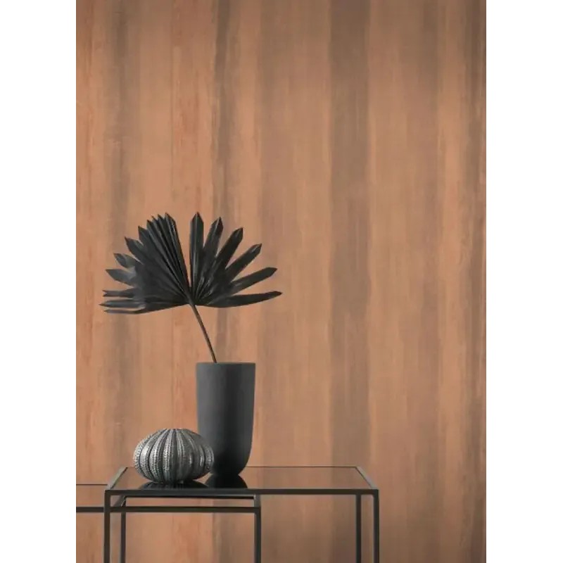 Papel Pintado rayas cobrizo efecto hormigón. Dale vida a tus paredes en cualquier estancia de tu hogar. Estética urbana con carácter auténtico.