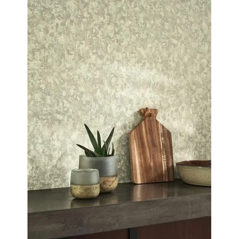 Papel pintado efecto pared de yeso beige, estilo rústico moderno, una elección sofisticada para estancias que buscan textura y personalidad.