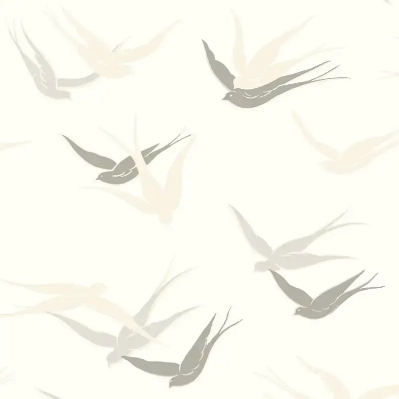 Papel pintado pájaros volando estilo art deco, perfecto para crear espacios serenos con un toque de carácter.