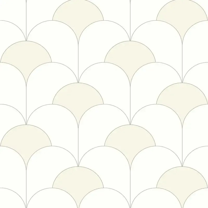 Papel pintado estilo art deco beige con elegantes formas en arcos, perfecto para crear espacios serenos con un toque de carácter.