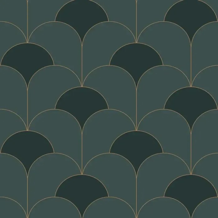 Papel pintado art deco elegante en forma de arcos negros y dorados, perfecto para crear espacios serenos con un toque de carácter.