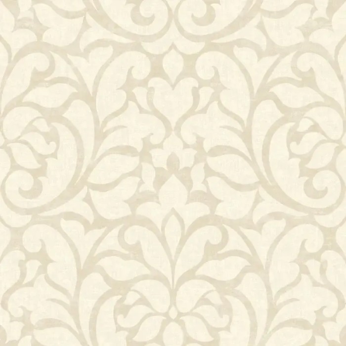 Papel pintado damasco tonos blancos y gris claro, ideal para salones o dormitorios con estilo sobrio y atemporal.