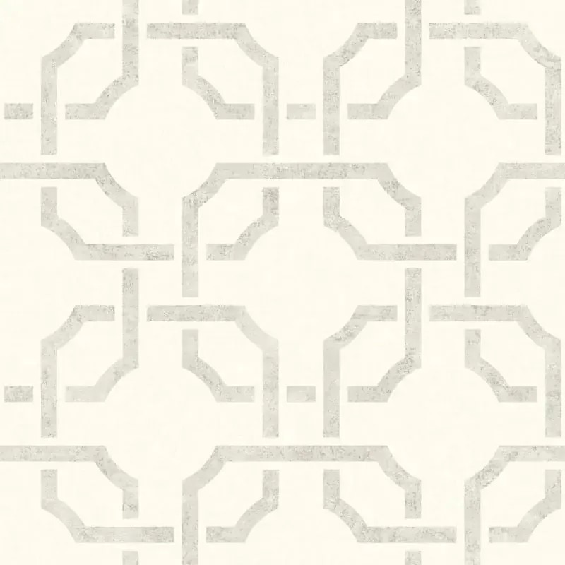 Papel pintado atemporal con formas geométricas concatenadas rosa y blanco, una propuesta decorativa refinada para interiores contemporáneos.