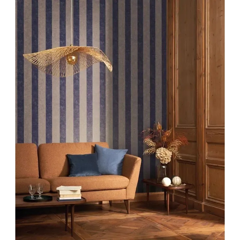 Papel pintado rayas azules y grises típicas del estilo inglés, perfecto para crear espacios serenos con un toque de carácter.