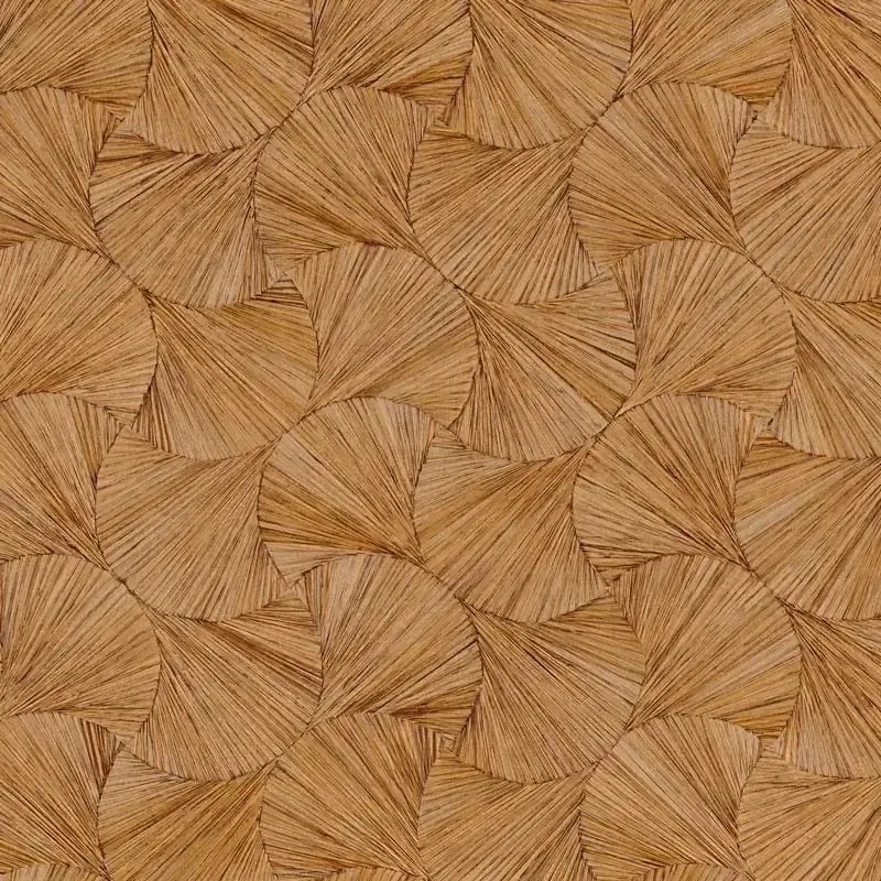 Papel pintado oriental abanicos fibra natural marrón ocre de Casamance, colección Archipel. Calidad vinílico lavable, medidas: 70 cm x 10 m.