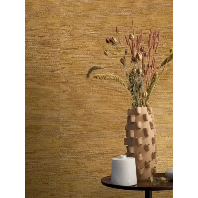 Papel pintado fibras naturales efecto rafia marrón naranja de Casamance, colección Archipel. Calidad vinílico lavable, medidas: 70 cm x 10 m.
