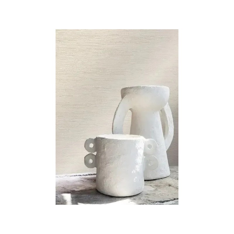 Papel pintado fibras naturales efecto rafia blanco metalizado de Casamance, colección Archipel. Calidad vinílico lavable, medidas: 70 cm x 10 m.
