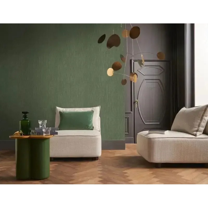 Papel pintado fibras naturales rafia verde textil