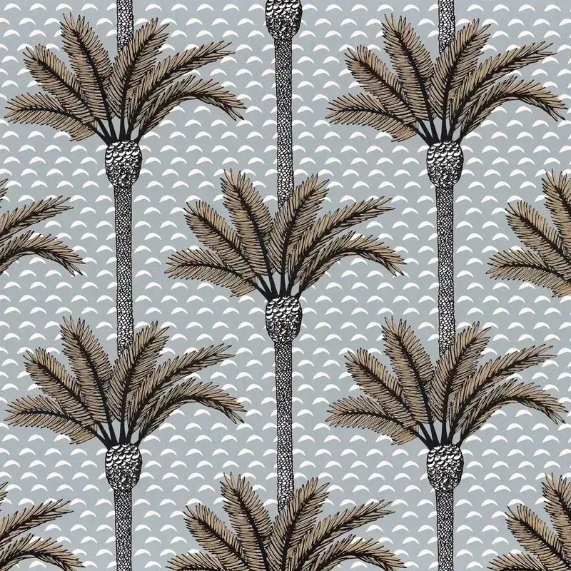 Papel pintado tropical palmeras negras de Casamance, colección Mirage. Calidad vinílico lavable, medidas: 68 cm x 10 m.