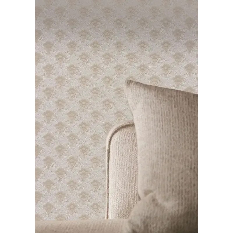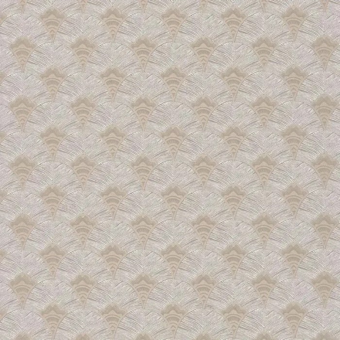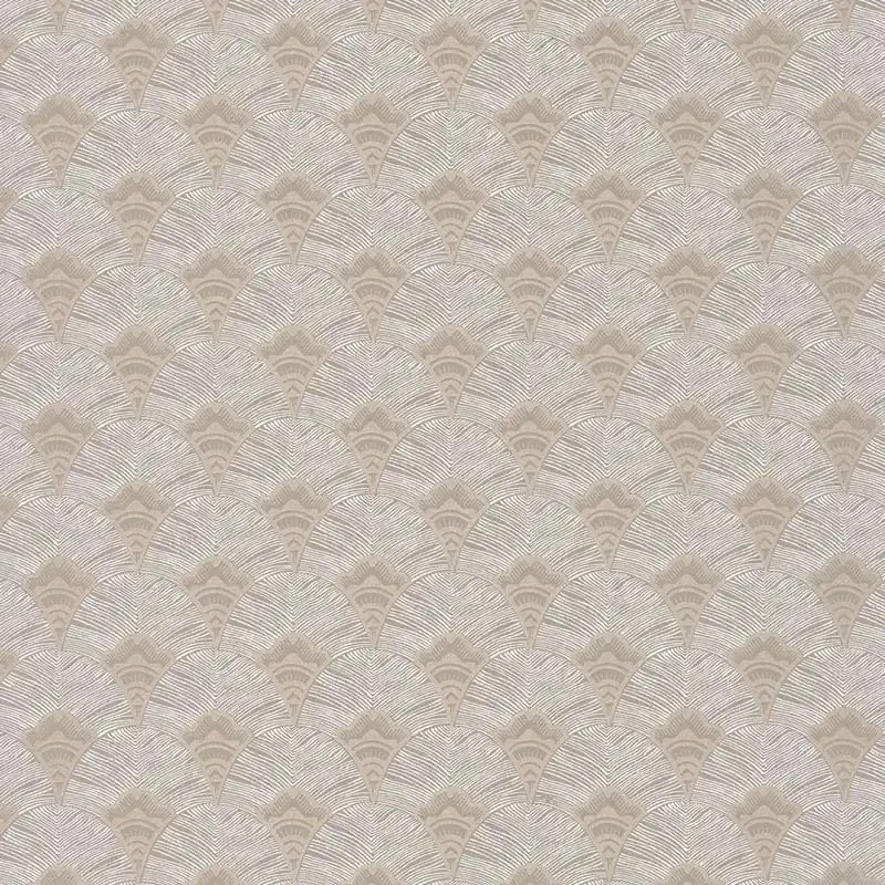 Papel pintado geométrico abanicos beige y gris de Casamance, colección Mirage. Calidad vinílico lavable, medidas: 53 cm x 10 m.