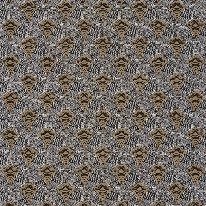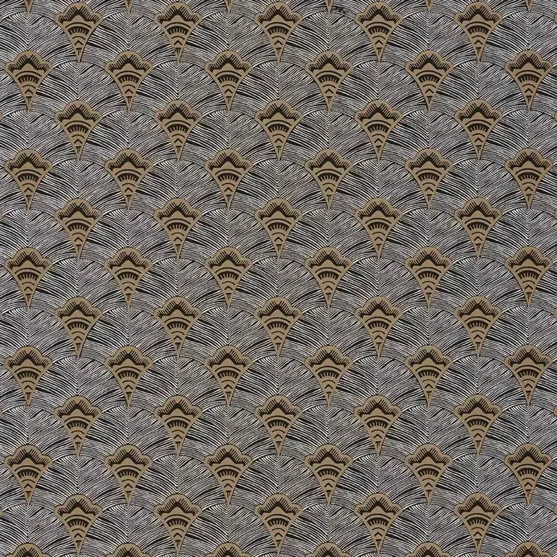 Papel pintado geométrico abanicos gris y dorado de Casamance, colección Mirage. Calidad vinílico lavable, medidas: 53 cm x 10 m.