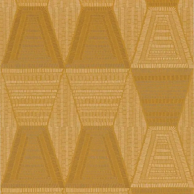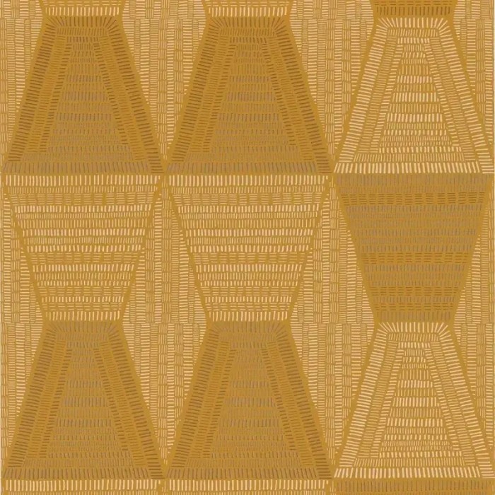 Papel pintado étnico tribal africano metalizado de Casamance, colección Mirage. Calidad vinílico lavable, medidas: 53 cm x 10 m.