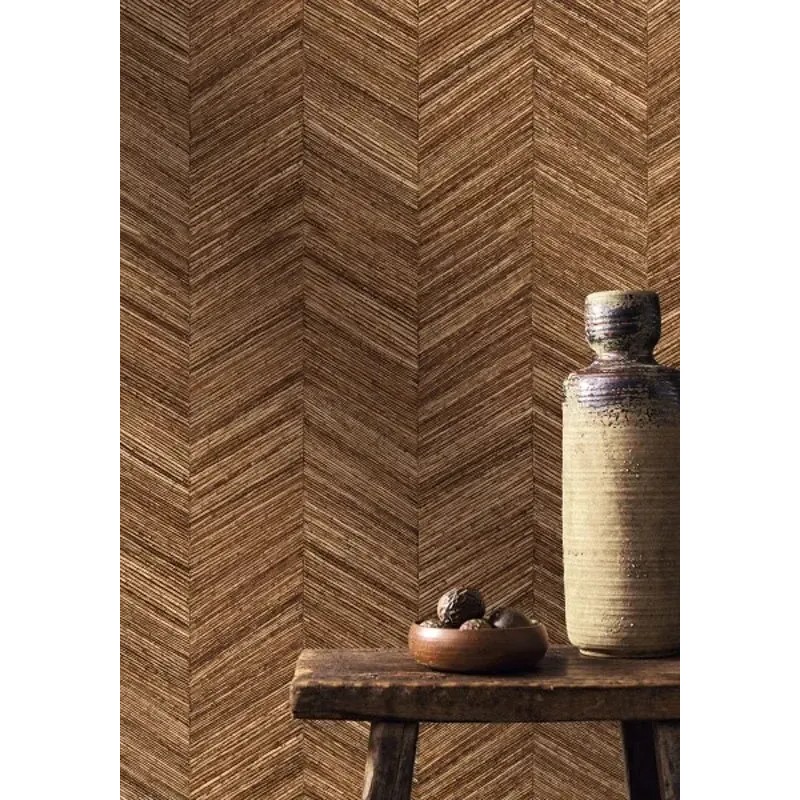 Papel pintado espiga fibras naturales tejidas marrón de Casamance, colección Textures Vegetales. Calidad vinílico lavable, medidas: 70 cm x 10 m.