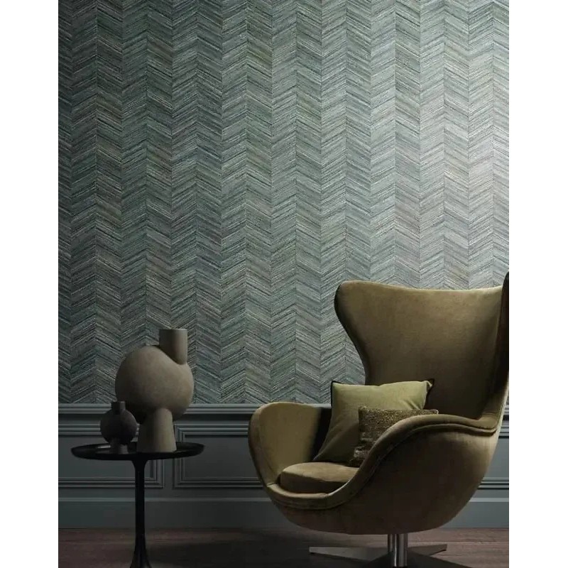 Papel pintado espiga fibras naturales tejidas verde caqui de Casamance, colección Textures Vegetales. Calidad vinílico lavable, medidas: 70 cm x 10 m.