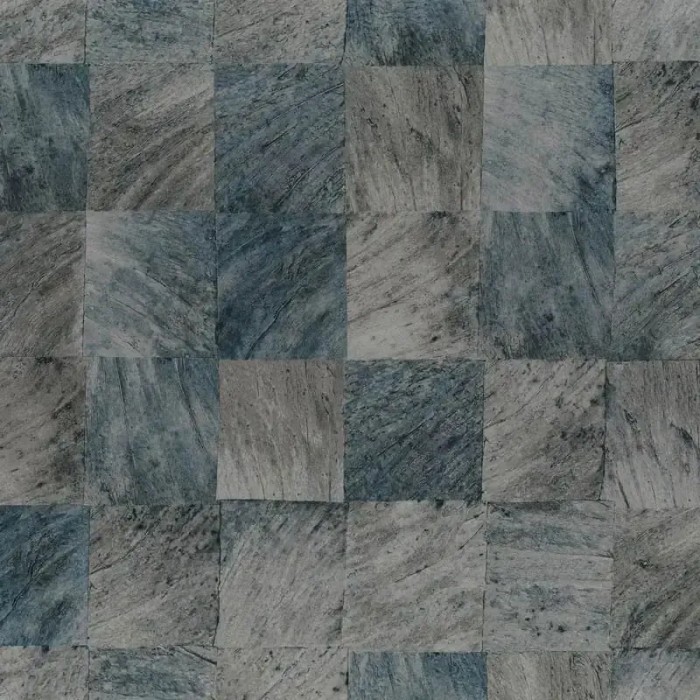 Papel pintado mosaico hojas exóticas efecto madera gris de Casamance, colección Textures Vegetales. Calidad vinílico lavable, medidas: 70 cm x 10 m.