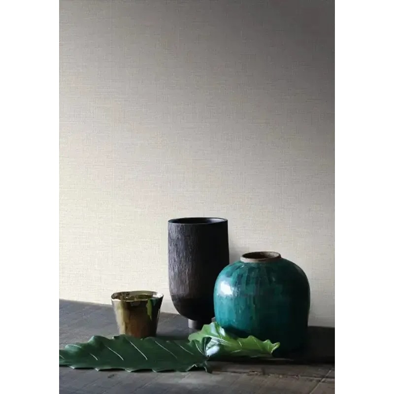 Papel pintado rafia beige teñido con fibras naturales de Casamance, colección Golfe Du Bengale. Calidad vinílico lavable, medidas: 70 cm x 10 m.