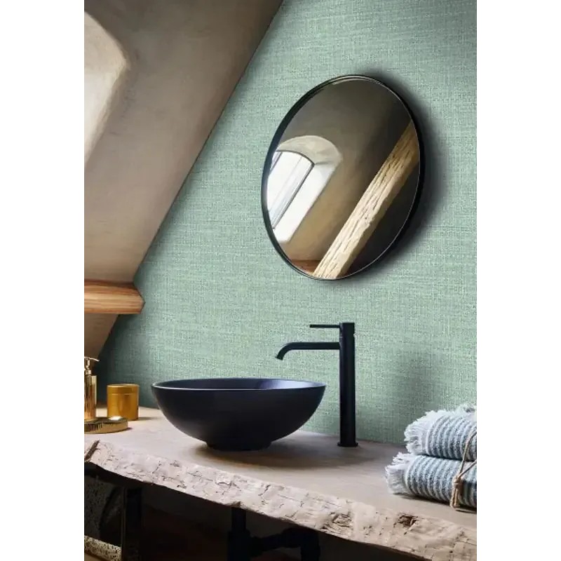Papel pintado rafia verde turquesa teñida artesanal de Casamance, colección Golfe Du Bengale. Calidad vinílico lavable, medidas: 70 cm x 10 m.