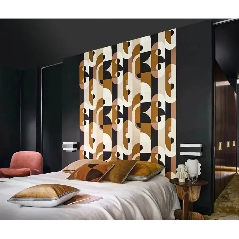 Papel pintado geométrico abstracto multicolor con diseño moderno de Casamance, colección Mouvements. Calidad vinílico lavable, medidas: 70 cm x 10 m.
