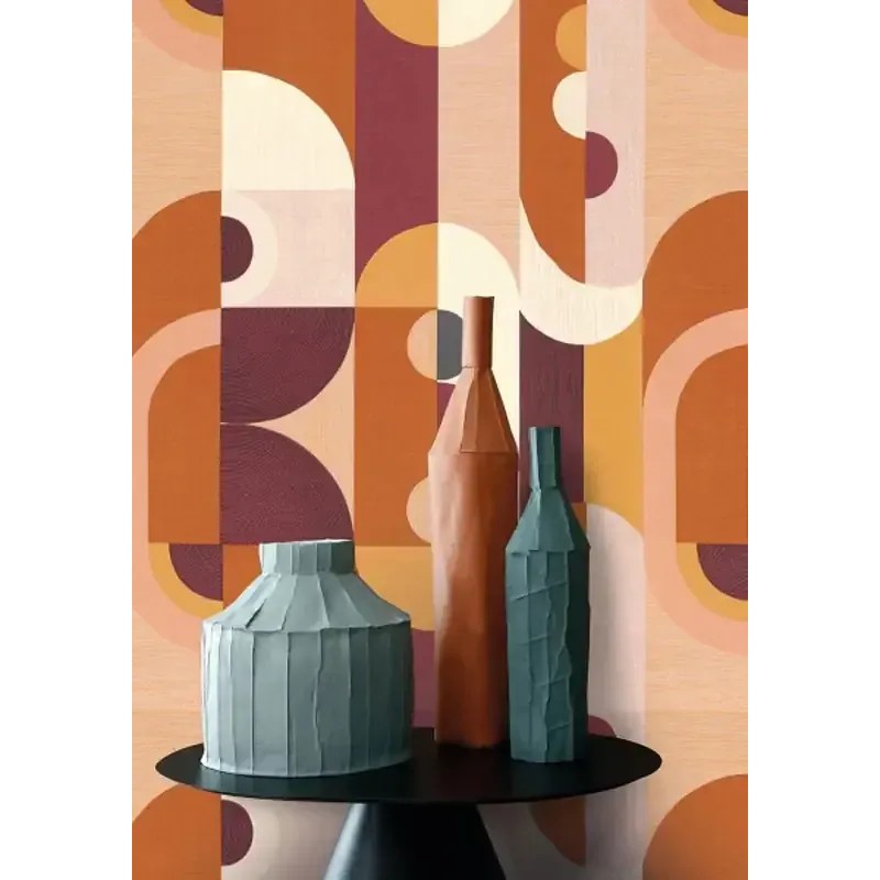 Papel pintado geométrico abstracto multicolor con diseño moderno de Casamance, colección Mouvements. Calidad vinílico lavable, medidas: 70 cm x 10 m.