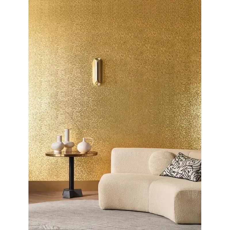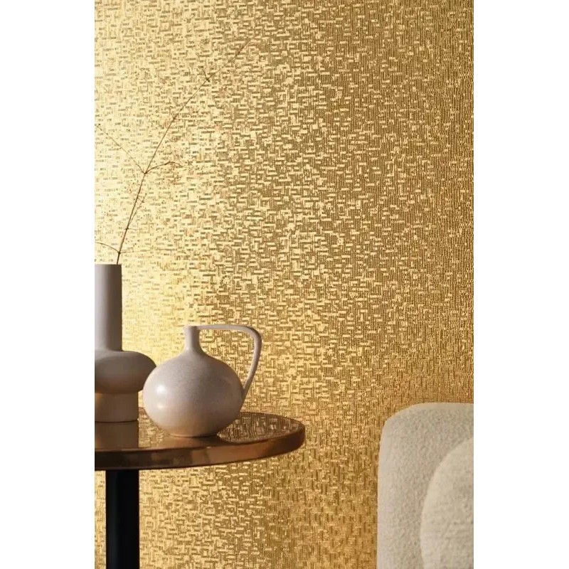 Abstrakte Tapete gold mit Metallfolien von Casamance, Kollektion Textures Metalliques. Abwaschbare Vinyl-Qualität, Maße: 70 cm x 10 m.