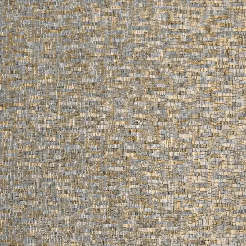Sobre el papel pintado TESSELA se reproduce un mosaico de pequeños trozos de mármol o piedra. La presencia de tres películas resalta sus contornos y relieves. Entre brillo y opacidad, resplandor dorado y plateado. Tessela juega con el juego de sombras y luces. algunos colores están realzados con tintas metálicas y reflejos iridiscentes.