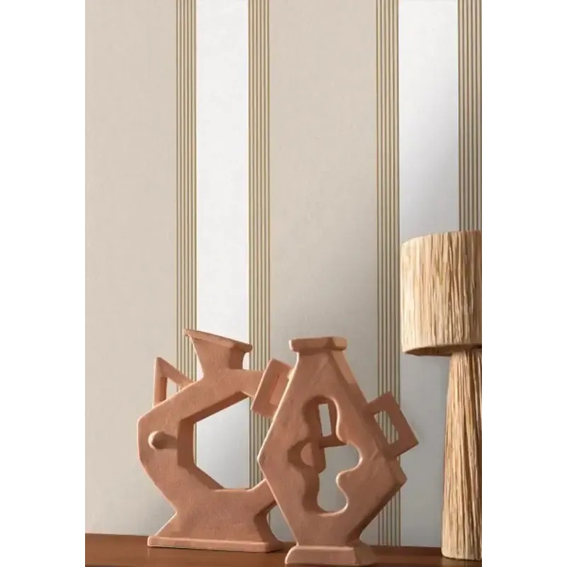 Papel pintado moderno rayas beige y doradas. Dale vida a tus paredes en cualquier estancia de tu hogar. Diseño contemporáneo que marca tendencia.