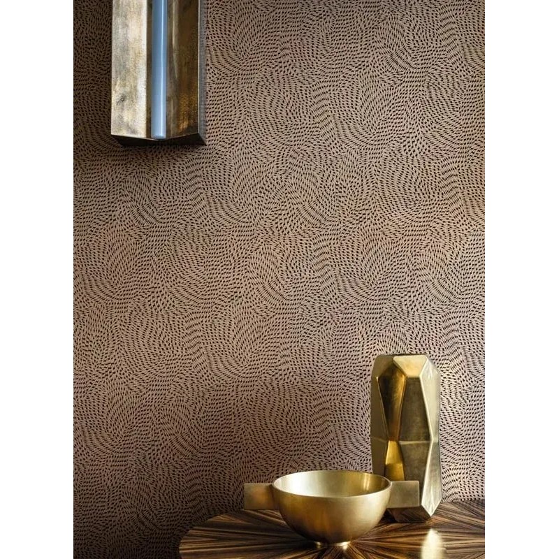 Papel pintado abstracto negro y cobre brillo mate de Casamance, colección Square Jasmin. Calidad vinílico lavable, medidas: 53 cm x 10 m.