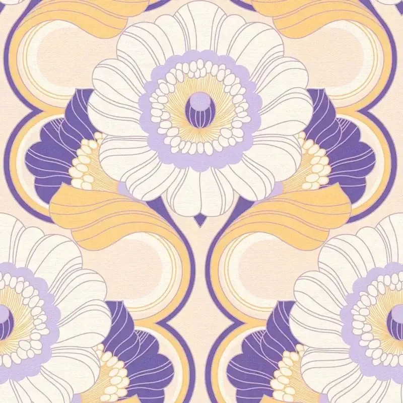 Ideal para transformar cualquier ambiente con encanto.. Papel pintado floral estilo retro rosa, violeta As Creation Retro Chic 395303.