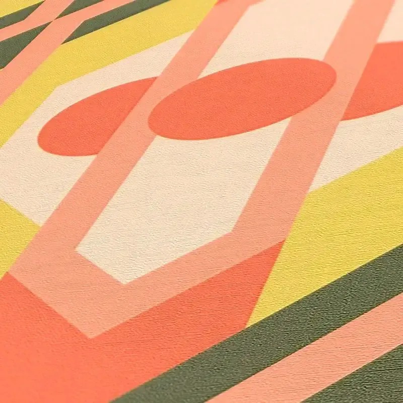 Perfecto para interiores que buscan calidez y estilo. Papel pintado geométrico años 70 estilo retro As Creation Retro Chic 395313.