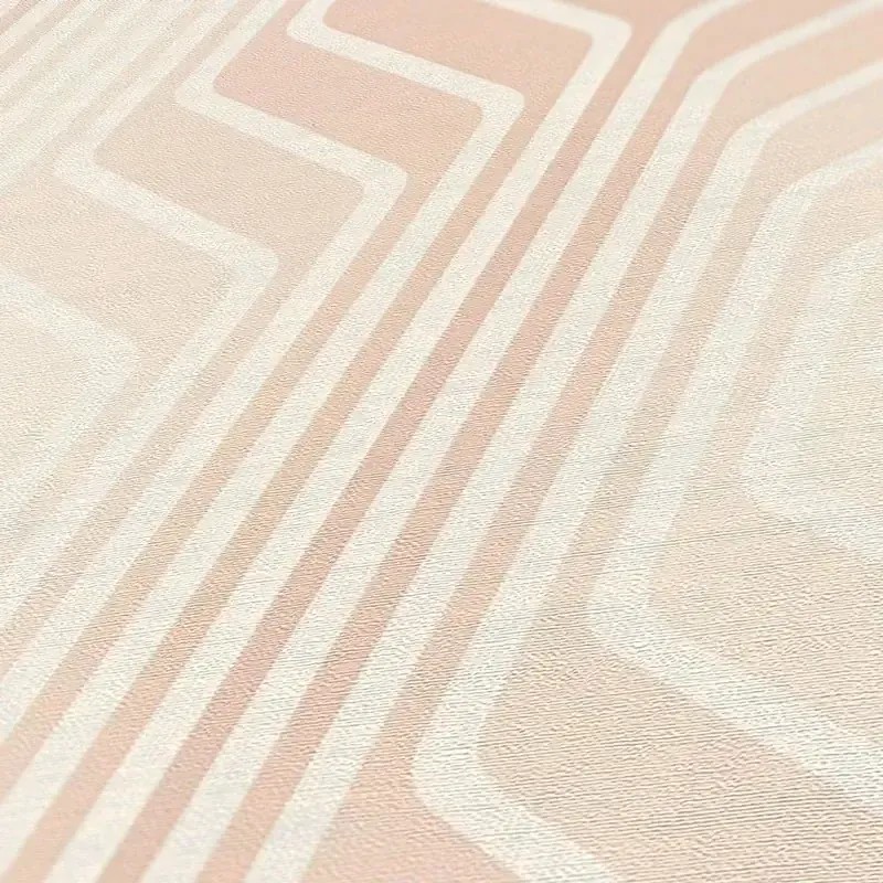 Añade carácter a tus estancias con este diseño versátil.. Papel pintado rombos estilo retro rosado, beige As Creation Retro Chic 395325.