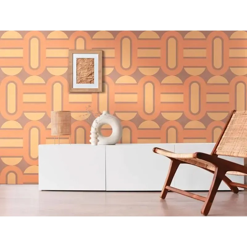 Papel pintado estilo retro años 70 naranja, Una propuesta decorativa para espacios con personalidad. As Creation Retro Chic 395362.