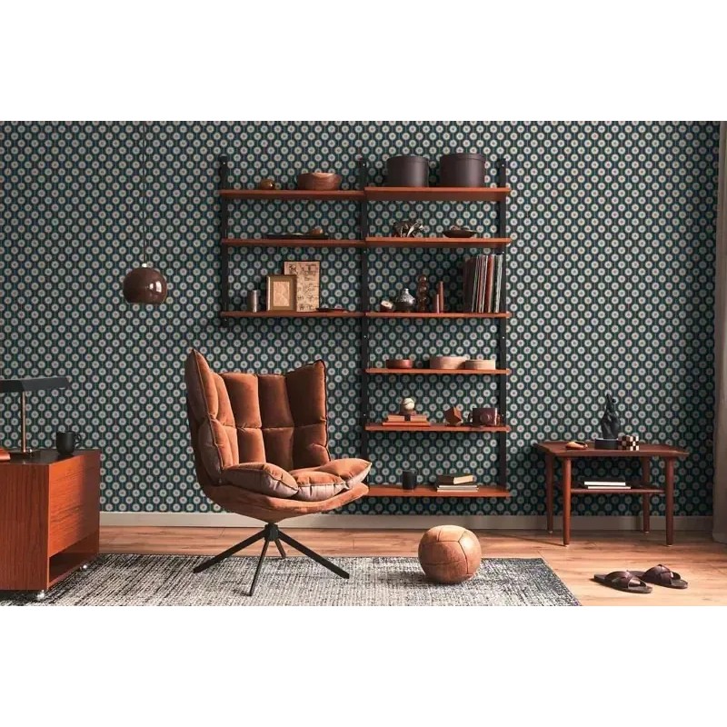 Diseño pensado para ambientes acogedores y contemporáneos. Papel pintado círculos dots estilo retro años 70 azul As Creation Retro Chic 395371.