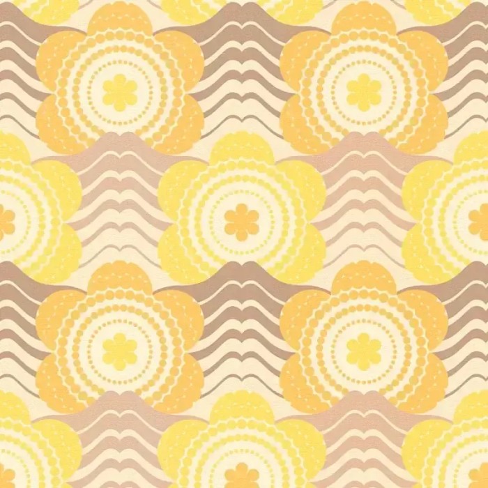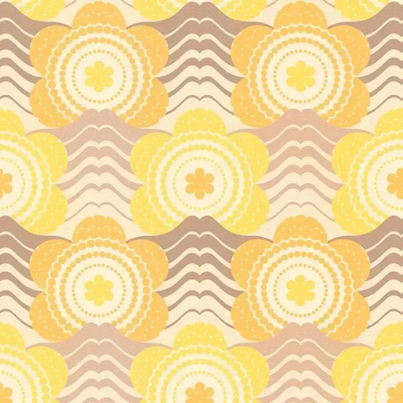 Una propuesta decorativa para espacios con personalidad. Papel pintado retro estilo años 70 naranja, amarillo As Creation Retro Chic 395394.