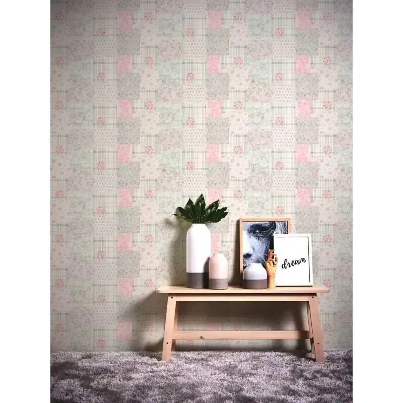 Una propuesta decorativa para espacios con personalidad. Papel pintado cuadros vichy tonos pastel As Creation Maison Charme 390722.