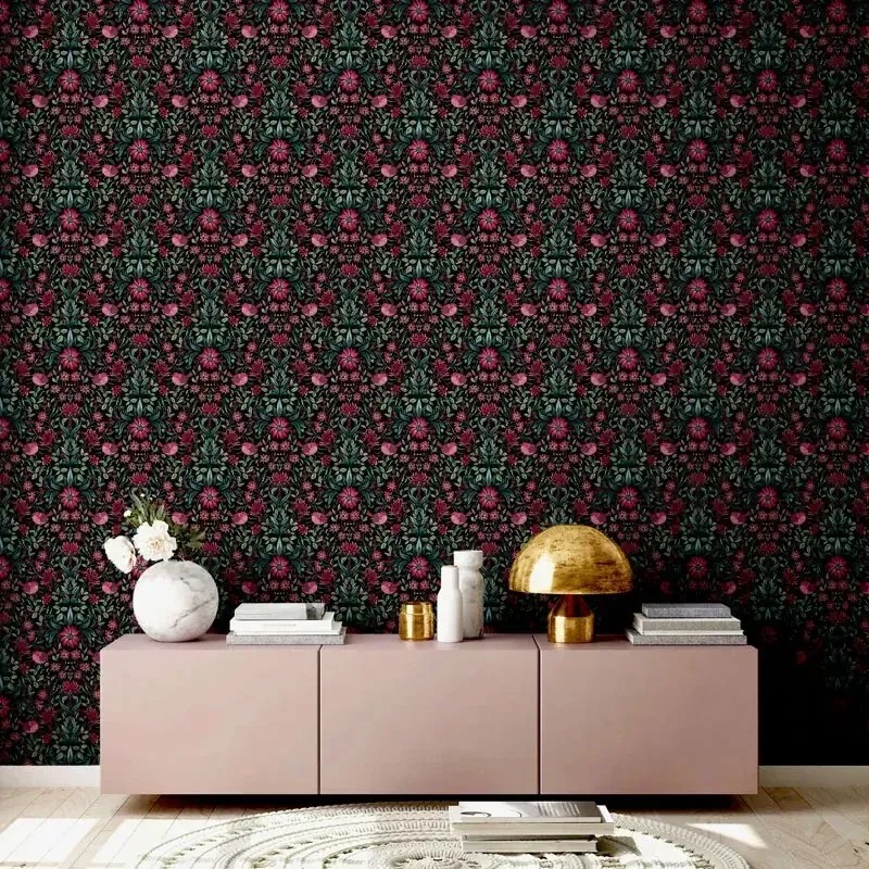 Papel pintado flores y pájaros rosa pastel, gris, Perfecto para interiores que buscan calidez y estilo. As Creation Maison Charme 390752.