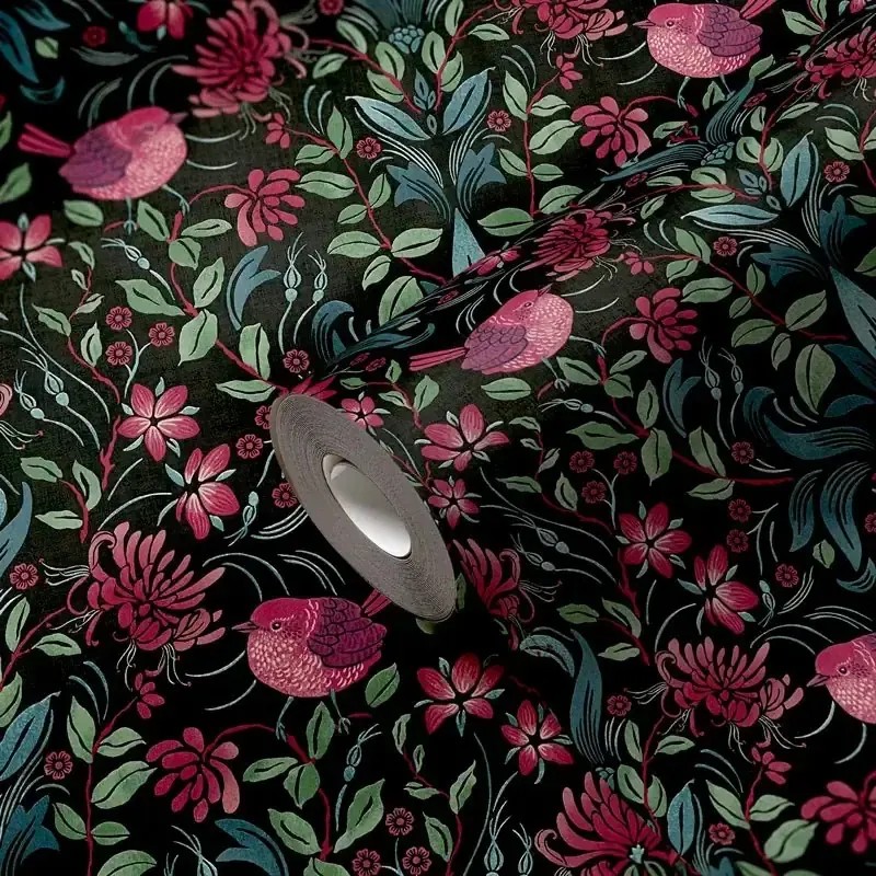 Papel pintado flores y pájaros multicolor romántico, Inspirado en la decoración actual, destaca por su autenticidad. As Creation Maison Charme 390753.