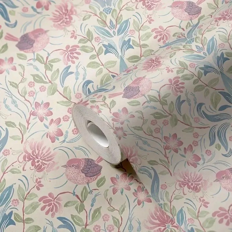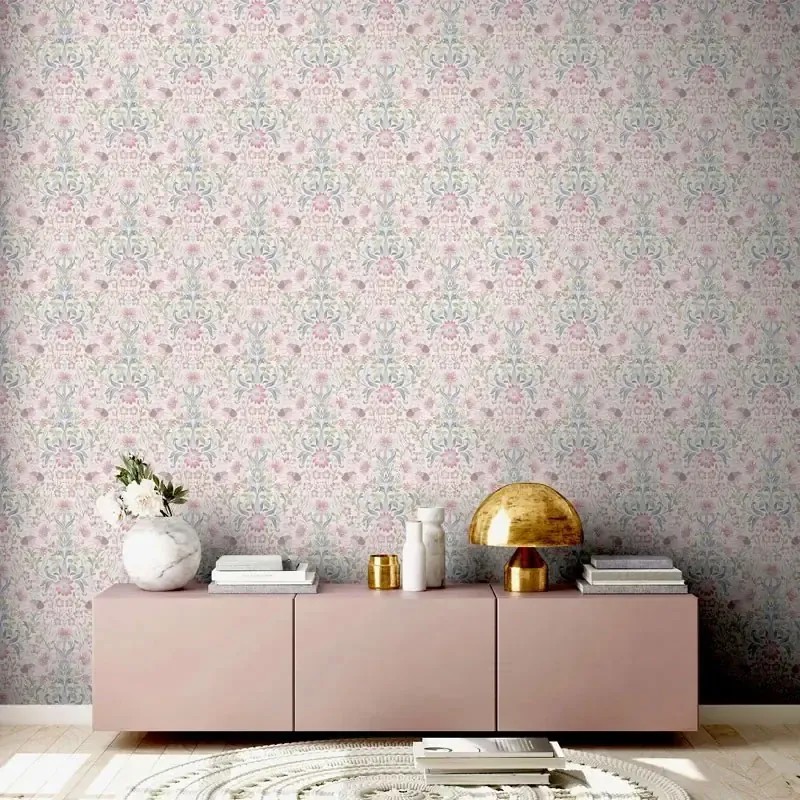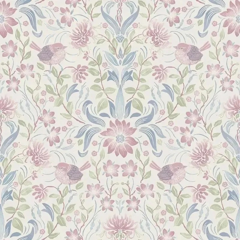 Papel pintado flores y pájaros rosa pastel, gris, Perfecto para interiores que buscan calidez y estilo. As Creation Maison Charme 390752.