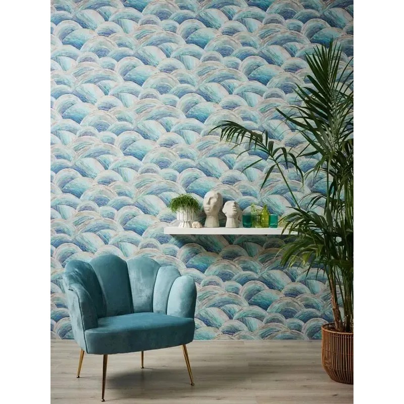 Una propuesta decorativa para espacios con personalidad.. Papel pintado forma de olas azul, verde y dorado As Creation Metropolitan Stories 391051.