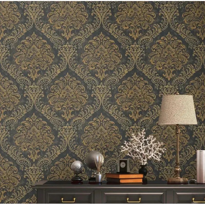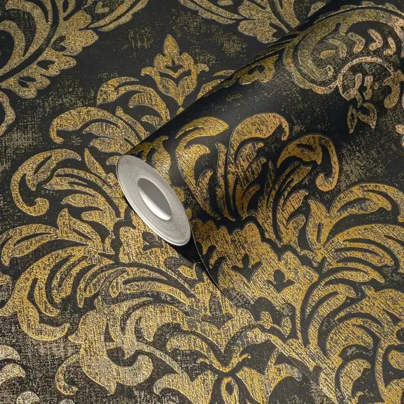 Ideal para dar un aire renovado y elegante a tus paredes. Papel pintado medallones damasco negro y dorado As Creation Metropolitan Stories 391124.