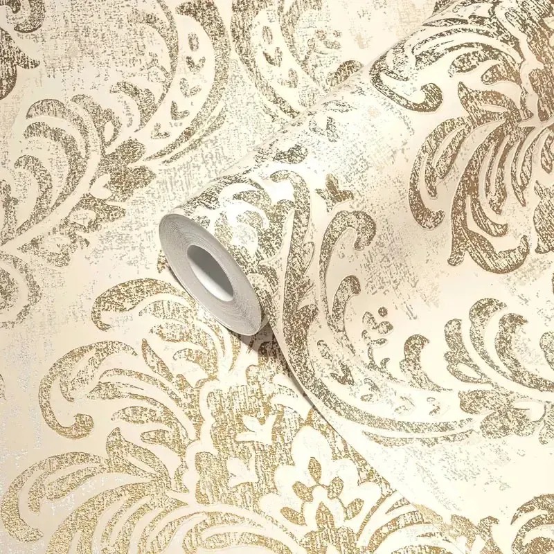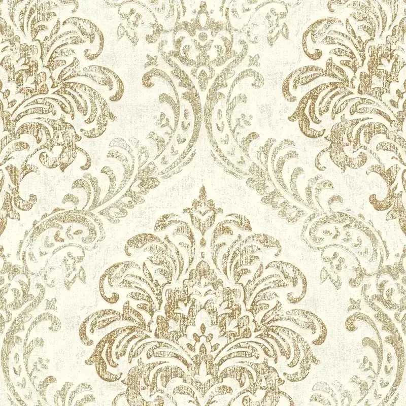 Papel pintado estilo damasco verde y dorado, Ideal para dar un aire renovado y elegante a tus paredes. As Creation Metropolitan Stories 391125.