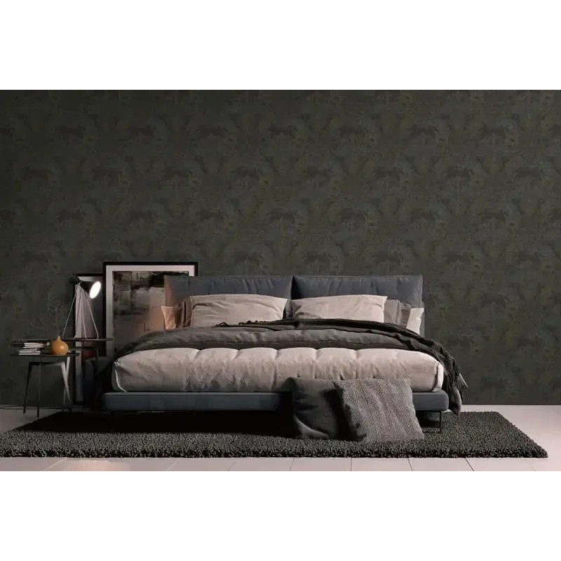 Papel pintado estilo damasco verde y dorado, Ideal para dar un aire renovado y elegante a tus paredes. As Creation Metropolitan Stories 391125.