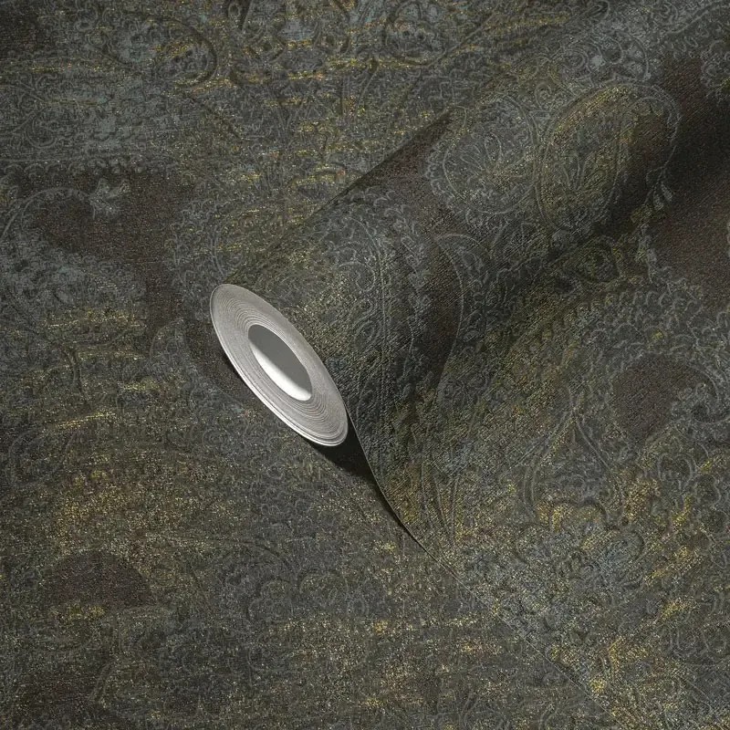 Ideal para dar un aire renovado y elegante a tus paredes. Papel pintado medallones damasco negro y dorado As Creation Metropolitan Stories 391124.