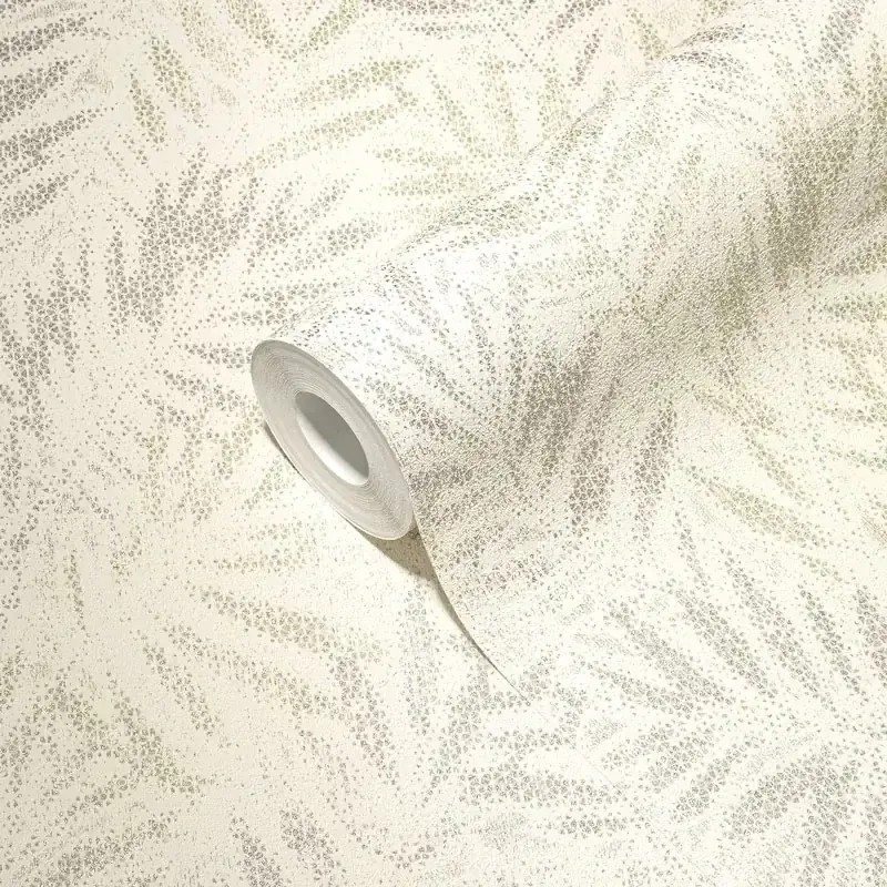 Papel pintado hojas de helechos crema y plateado, Ideal para transformar cualquier ambiente con encanto. As Creation Metropolitan Stories 391202.