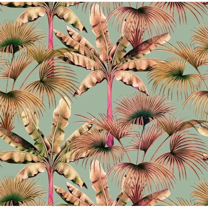 Tapete tropische grüne und beige Palmen und Bananenbäume