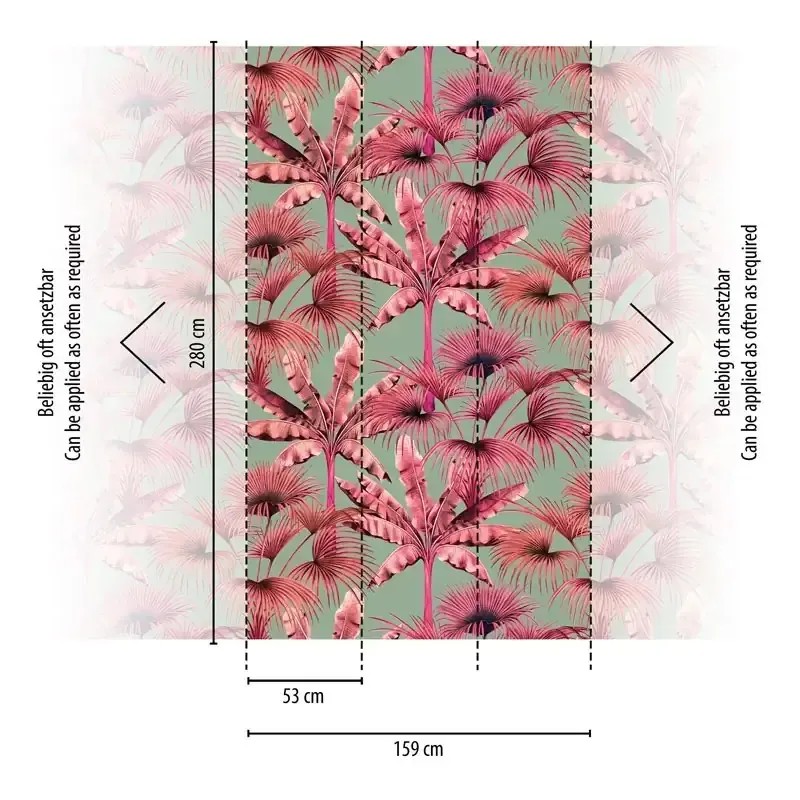 Papel pintado palmeras estilo tropical verde y rosa, Añade carácter a tus estancias con este diseño versátil. As Creation Metropolitan Stories 391833.