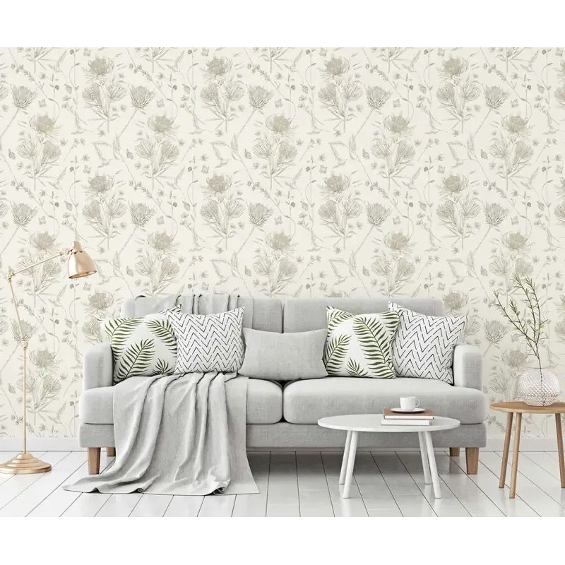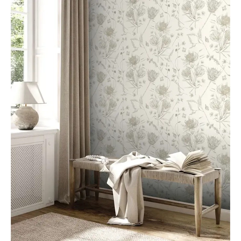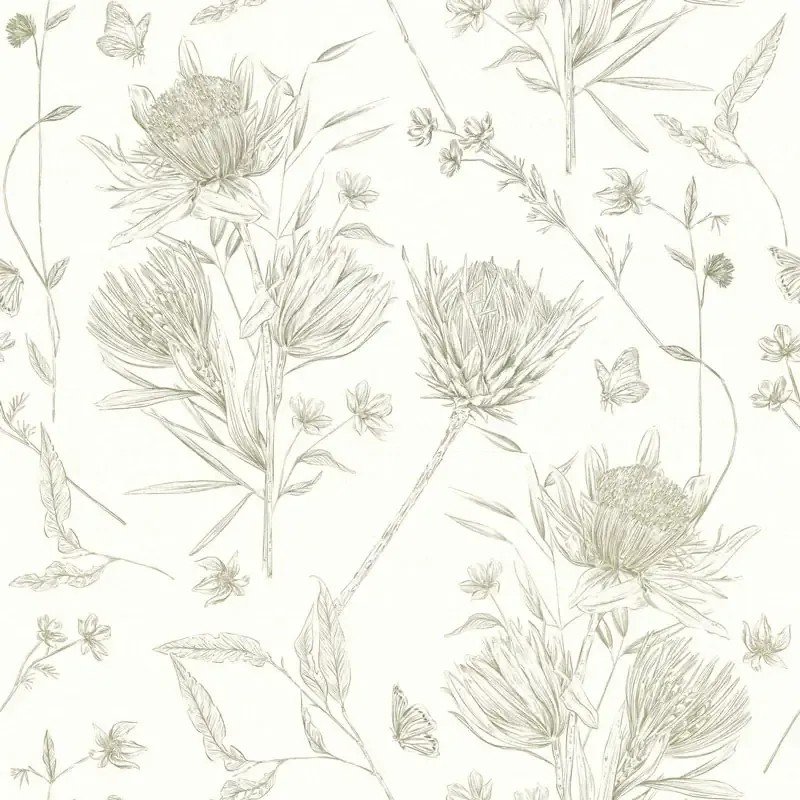 Perfecto para interiores que buscan calidez y estilo.. Papel pintado flores mariposas blanco y gris As Creation Drawn Into Nature 394272.