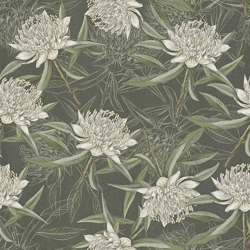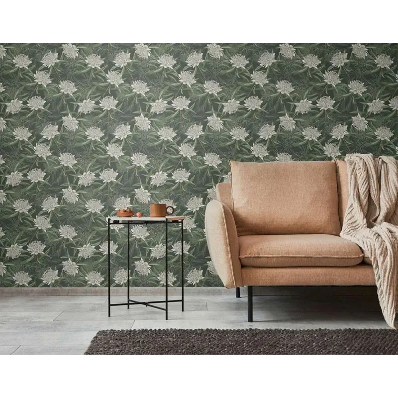 Diseño pensado para ambientes acogedores y contemporáneos. Papel pintado crisantemos estilo floral verde As Creation Drawn Into Nature 394321.
