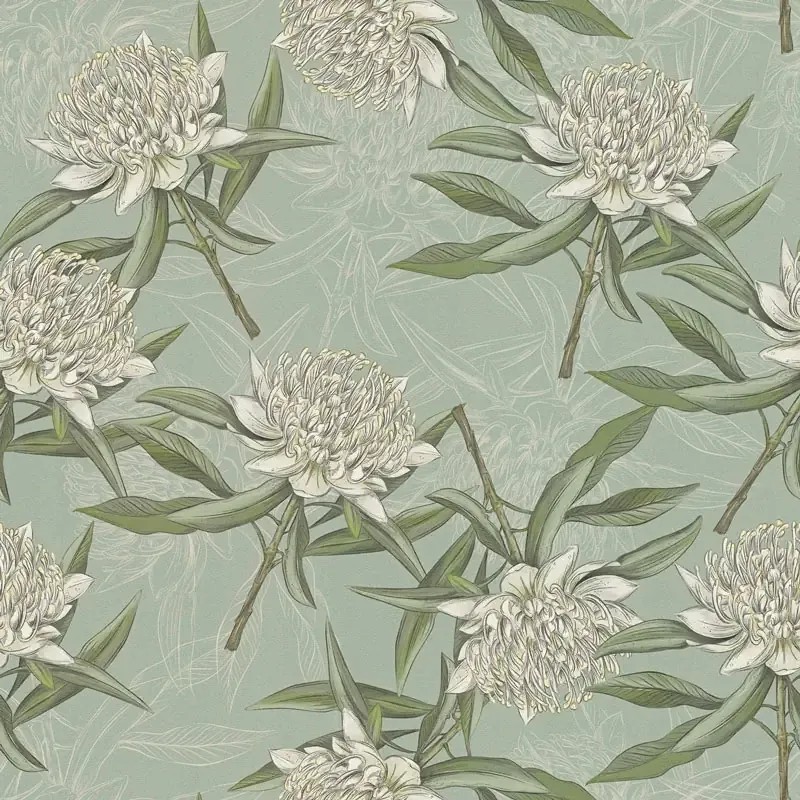 Ideal para transformar cualquier ambiente con encanto.. Papel pintado crisantemos estilo floral verde As Creation Drawn Into Nature 394322.