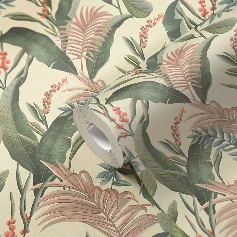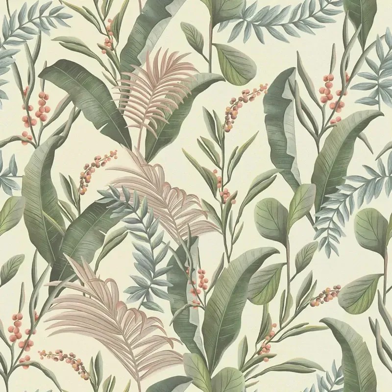 Papel pintado hojas grandes tonos verdes, Perfecto para interiores que buscan calidez y estilo. As Creation Drawn Into Nature 394364.