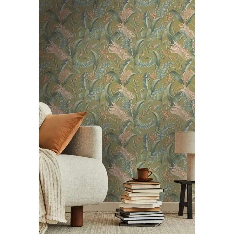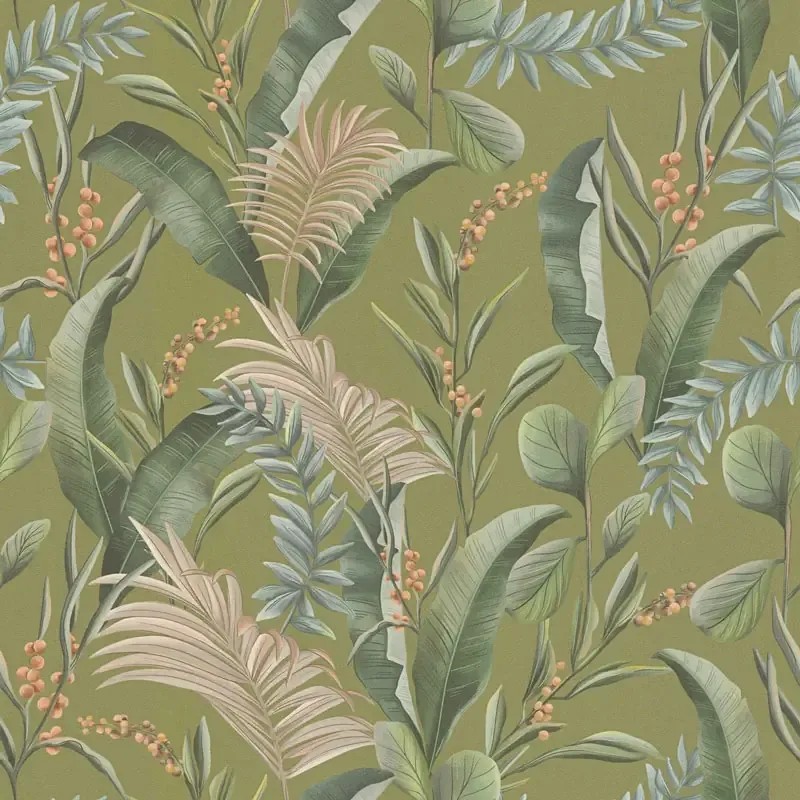 Papel pintado hojas grandes tonos verdes, Perfecto para interiores que buscan calidez y estilo. As Creation Drawn Into Nature 394364.